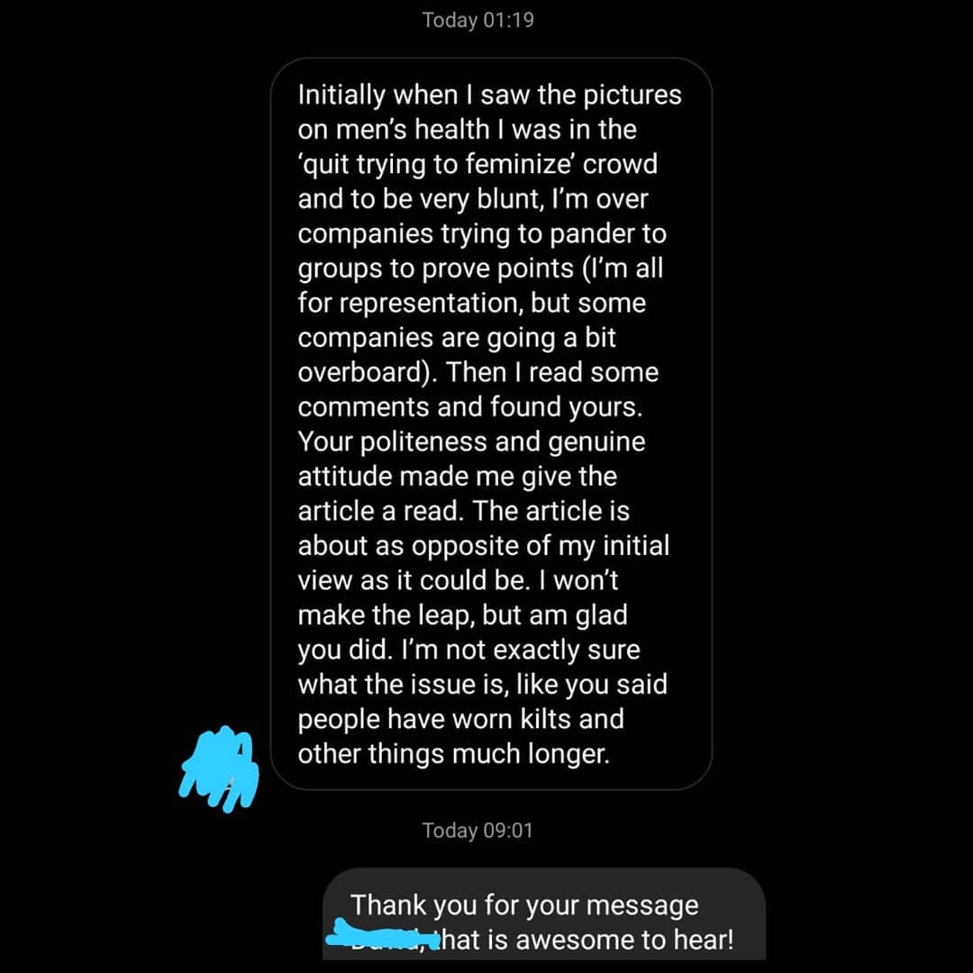 After a post I made on a men's fashion subreddit got some traction I was invited for an interview with Men's Health. What I loved about this opportunity is that my story would get exposure with a more traditionally masculine crowd. You'd be surprised at the kind of response I got.